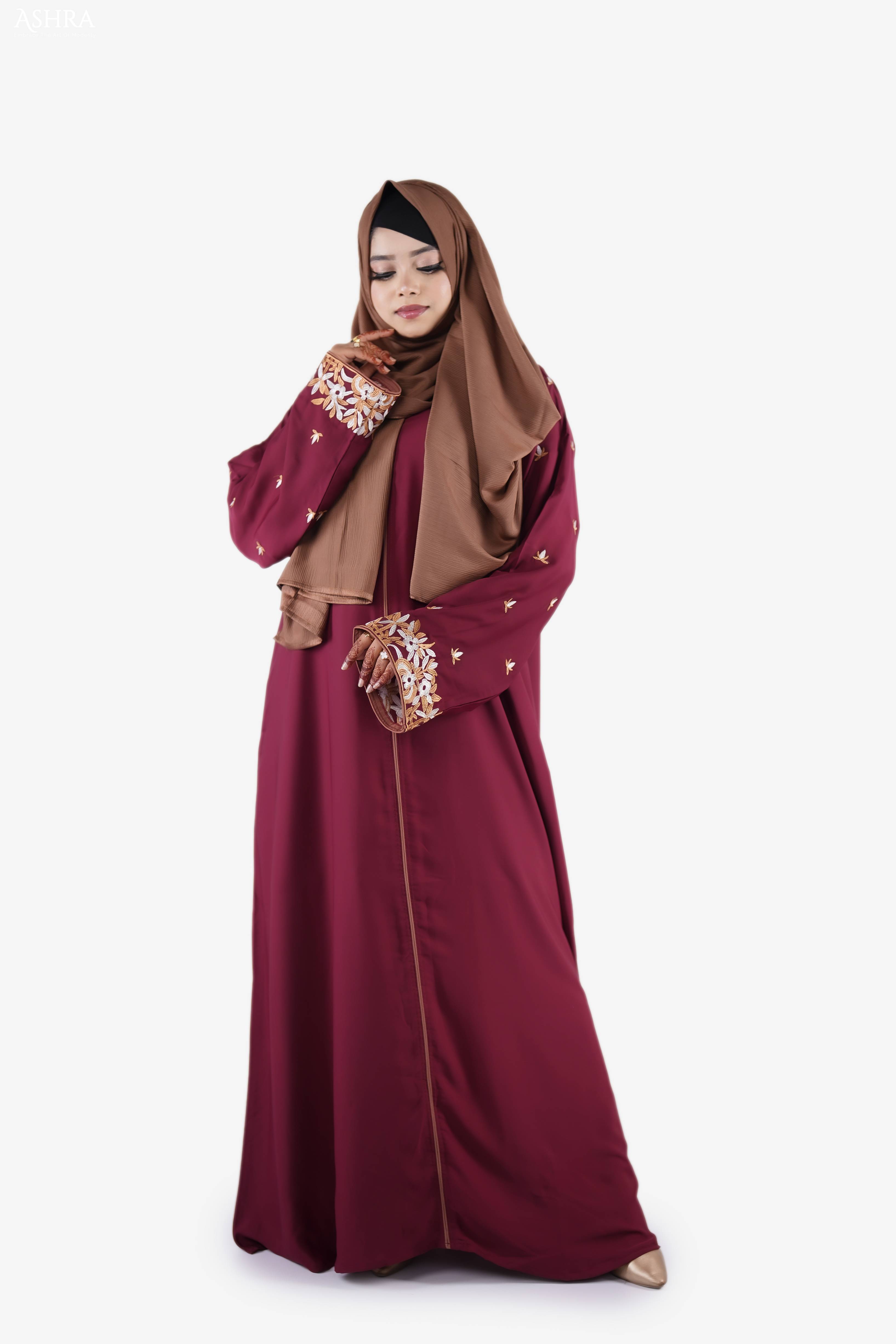 A timeless abaya elevated with delicate ethnic embroidery on the sleeves — subtle, graceful, and effortlessly elegant. Designed for women who prefer refined details over loud statements.