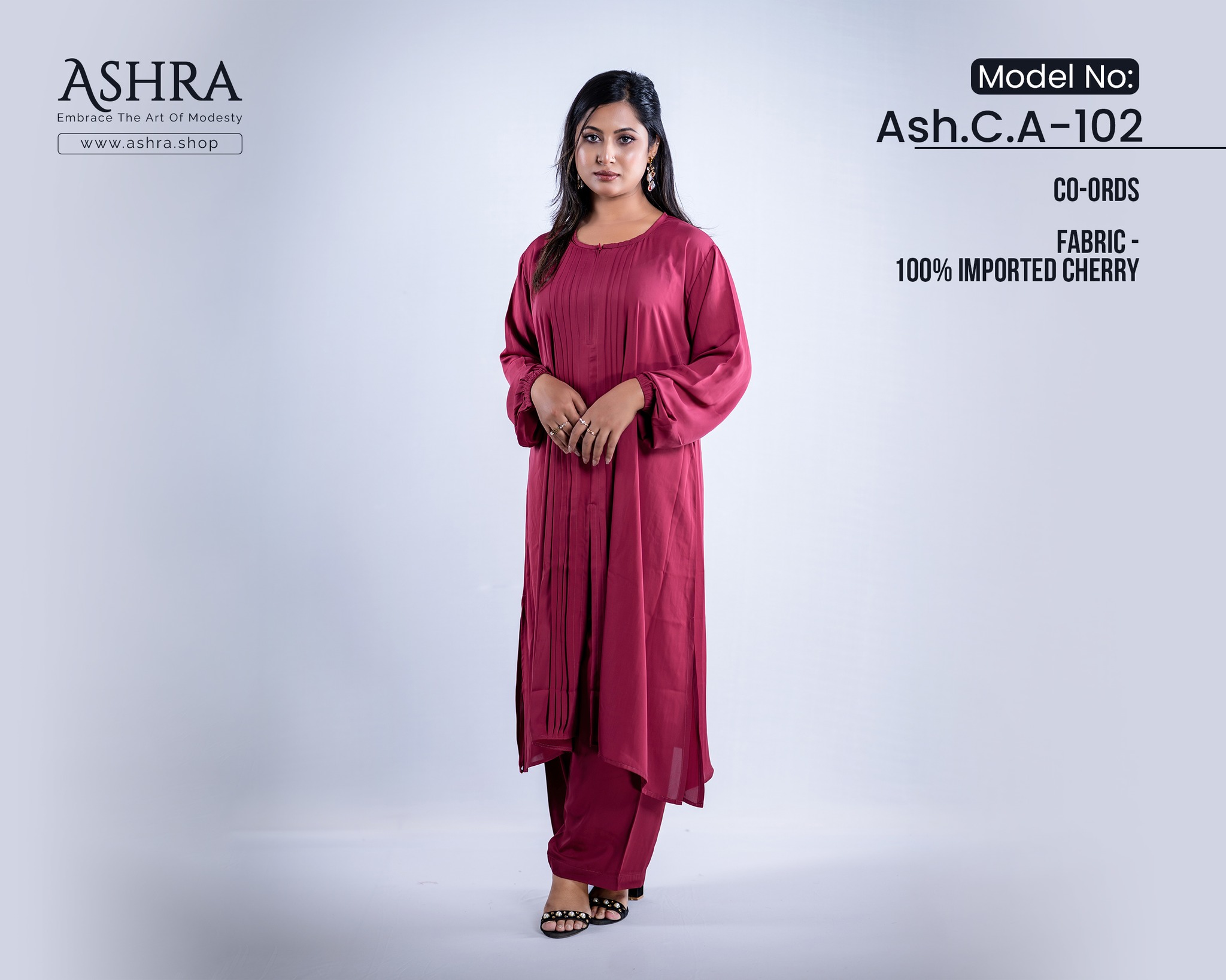 Crafted from imported cherry georgette, this set is buttery-soft, breathable, and built for the busy lives of university and office-going women.